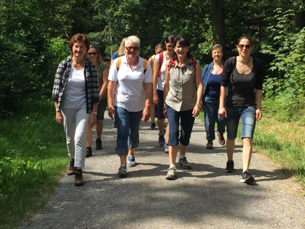 Der Weg führte die Wandergruppe zuerst in Richtung Seehaus. Unterwegs wurden die Damen mit einem kleinen Pausensnack und einem Glas Sekt zum 40-jährigen Bestehen überrascht.