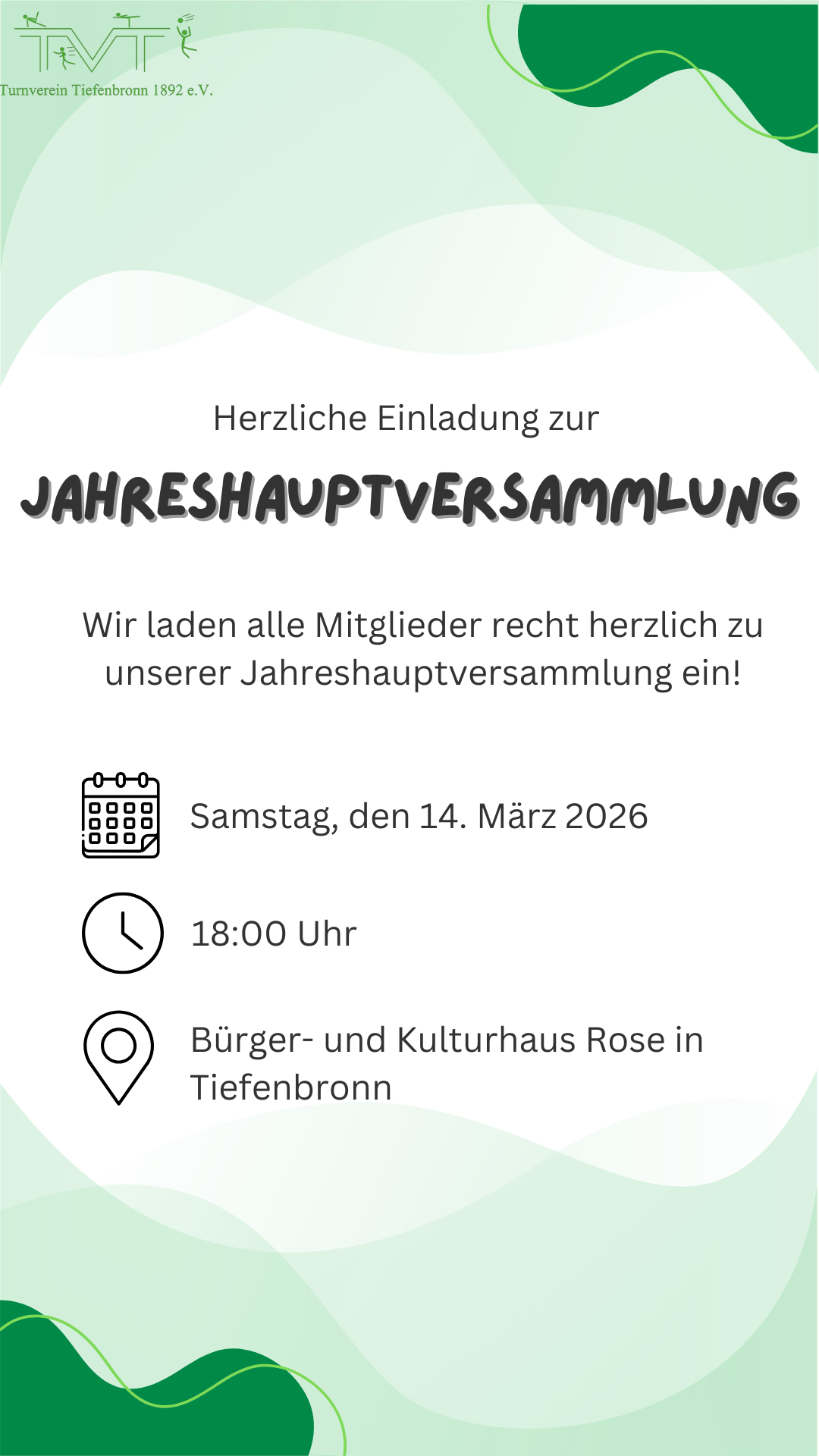 Unsere Jahreshauptversammlung findet in diesem Jahr am 14.03.2026 statt. Wir beginnen um 18:00 Uhr.
