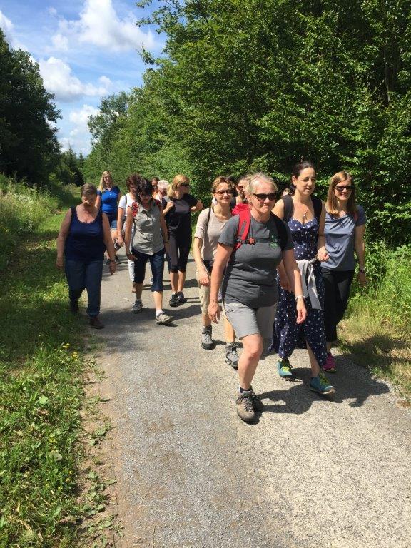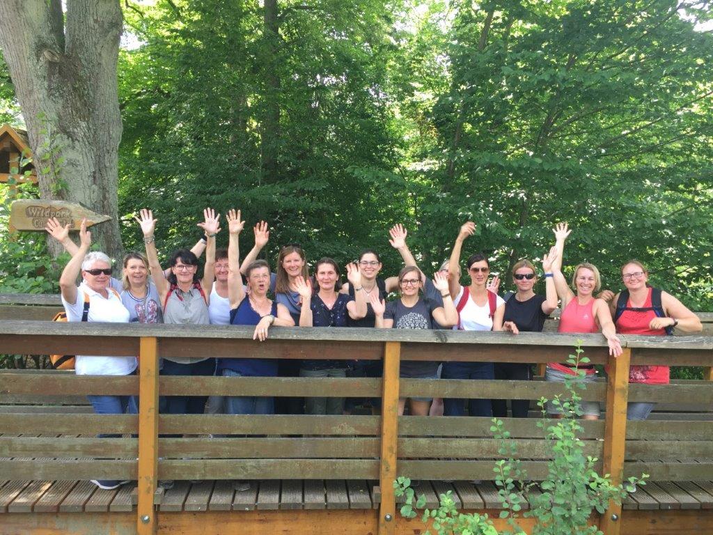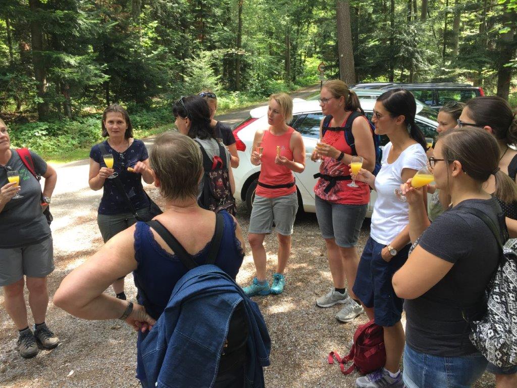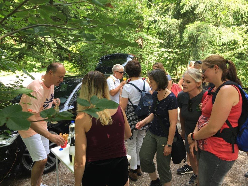 Der Weg führte die Wandergruppe zuerst in Richtung Seehaus. Unterwegs wurden die Damen mit einem kleinen Pausensnack und einem Glas Sekt zum 40-jährigen Bestehen überrascht.