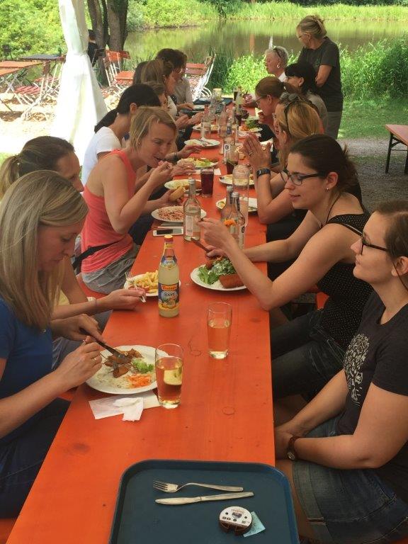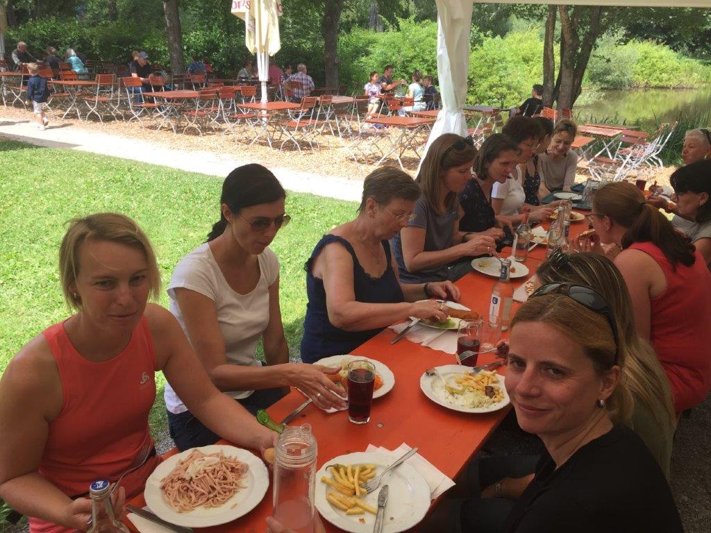 Danach marschierte die Gruppe zum Seehaus-Biergarten, wo sich die Damen beim Mittagessen stärkten. Weiter ging es zum Café Flora nach Würm.