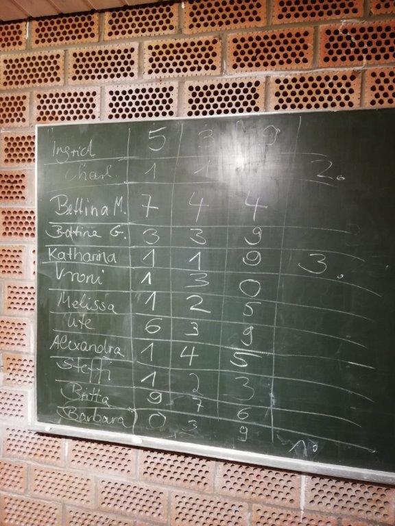 Zum Jahresabschluss trafen sich die Damen dann bei der Kegelbahn in der Gaststätte „Zur Eiche“ in Friolzheim. Nach einigen Kegelrunden verlegte die Mannschaft ihren Standort in den Nebenraum der Gaststätte und feierte dort ihre Abteilungsweihnachtsfeier.