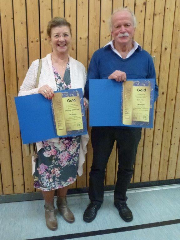 Unsere langjährigen und stets mit großem Einsatz aktiven Mitglieder, Charlotte Schrödinger und Dieter Glass, wurden am Sonntag, 14. Januar 2018, beim 1. Bürgerempfang der Gemeinde Tiefenbronn mit der Goldenen Ehrennadel der Gemeinde Tiefenbronn für ihre über 30-jährige ehrenamtliche Tätigkeit in unserem Verein geehrt.