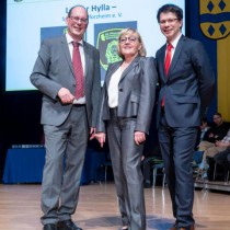 Auf der Bühne durfte Charlotte Schrödinger aus den Händen des Vorstandsvorsitzenden der Sparkasse Pforzheim Calw Hr. Stephan Scholl die Urkunde, den Pokal für den Ehrenamtspreis, sowie einen Scheck über Euro 500,00 für unseren Verein in Empfang nehmen.