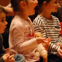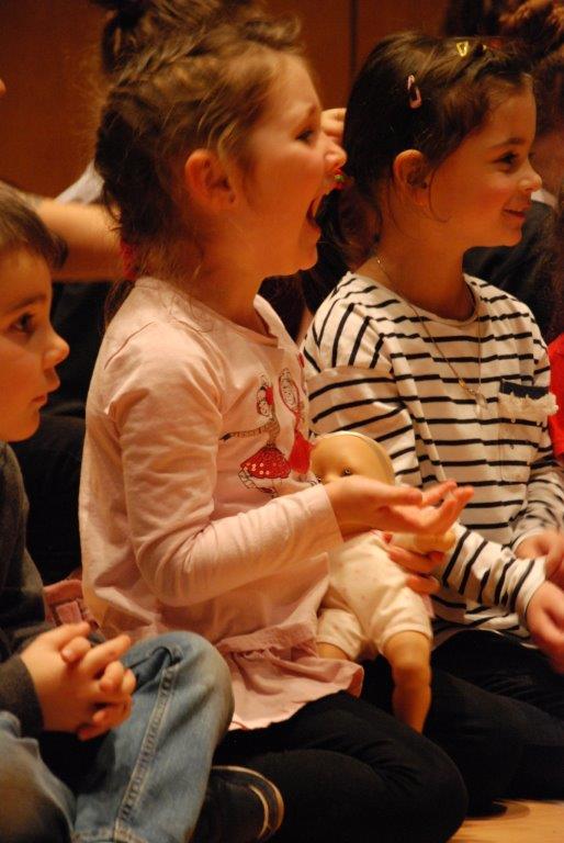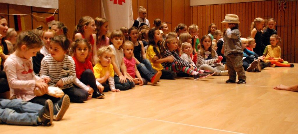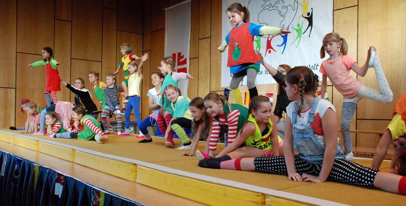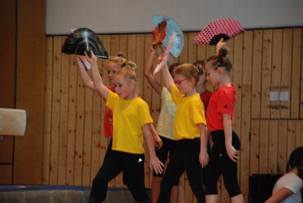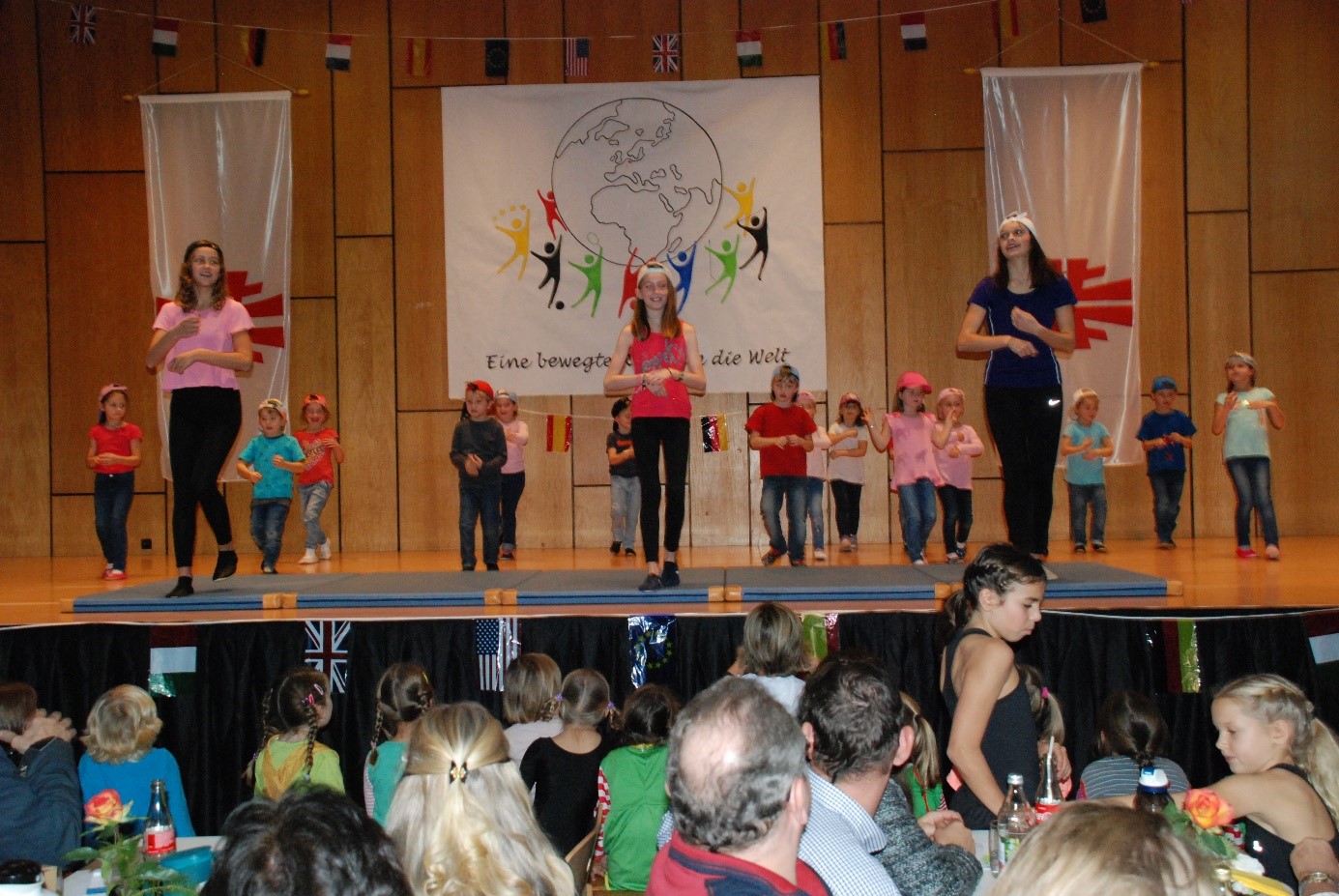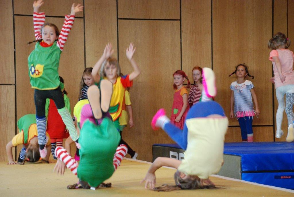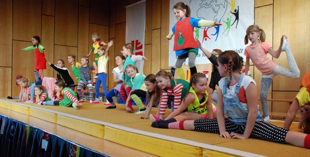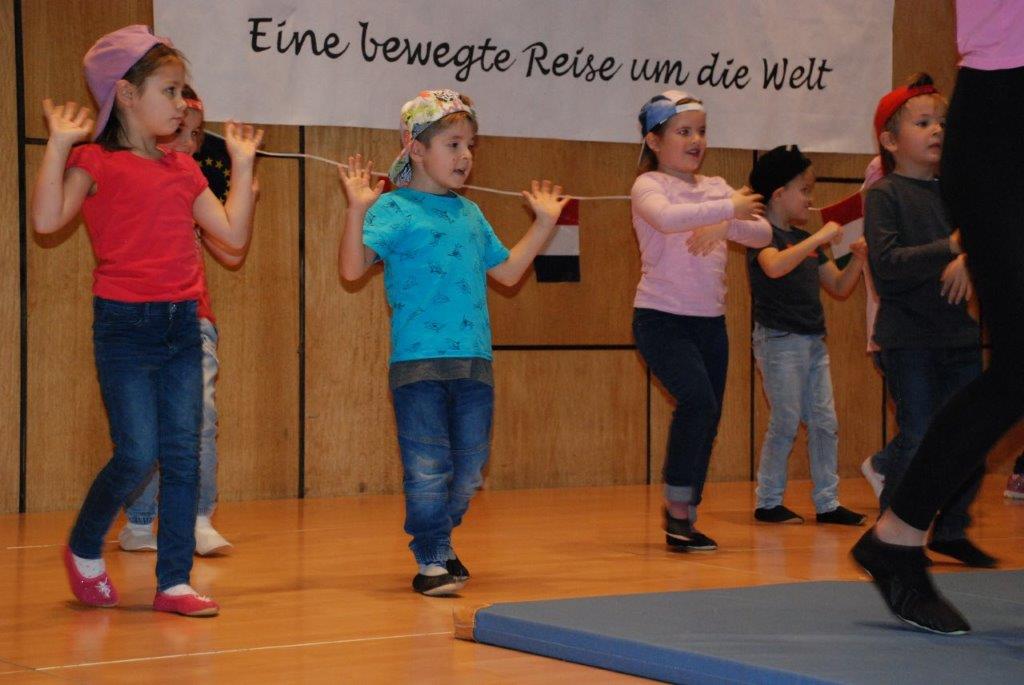 „Eine lange Kinderschlange wackelt mit dem Kopf“, hieß es, als die Kinder vom Eltern-Kindturnen (Trainerinnen Louise Therese Do und Lisa Krüger) die Bühne eroberten.