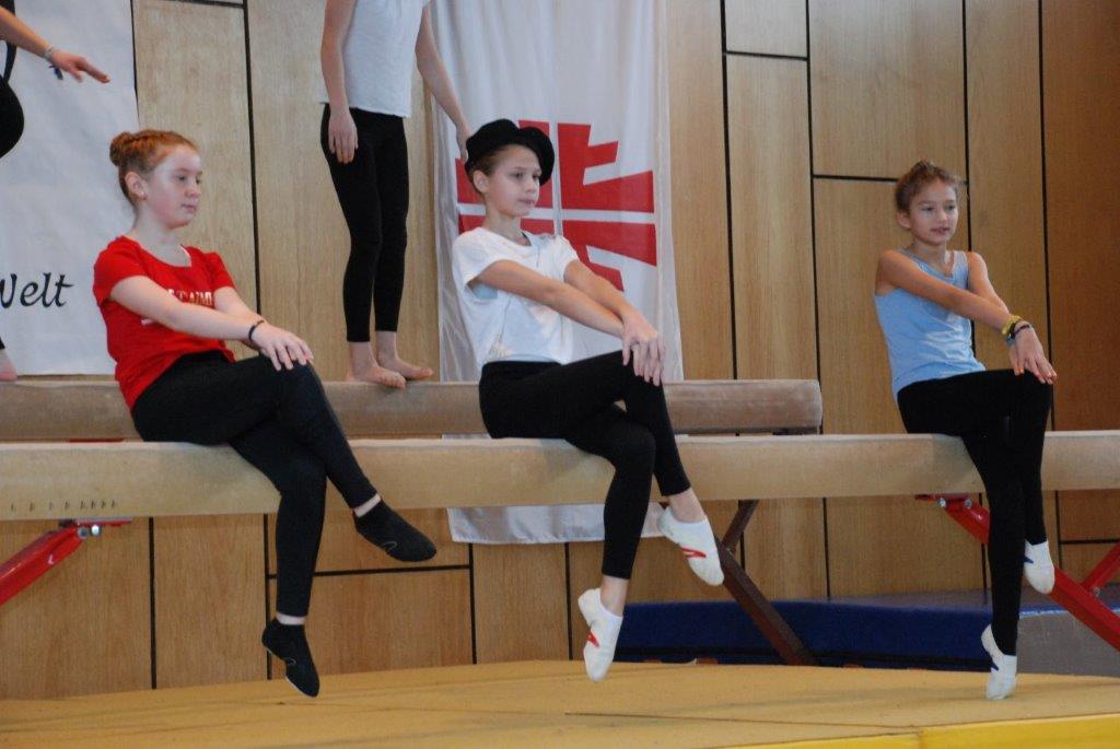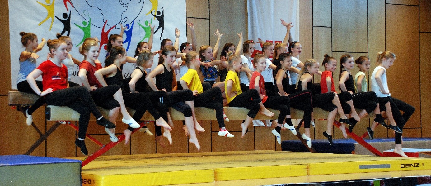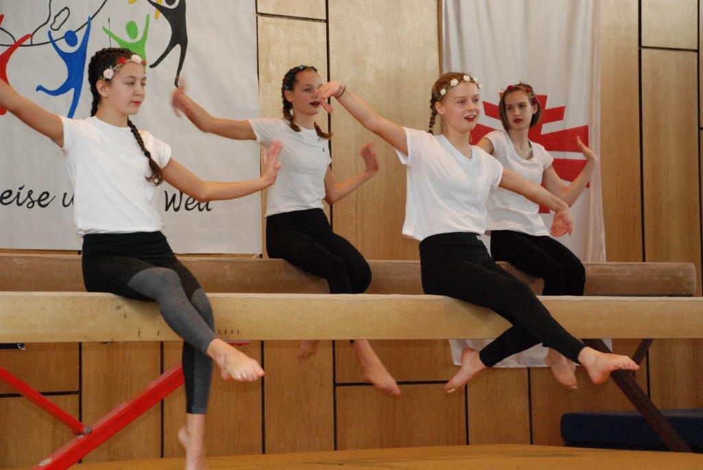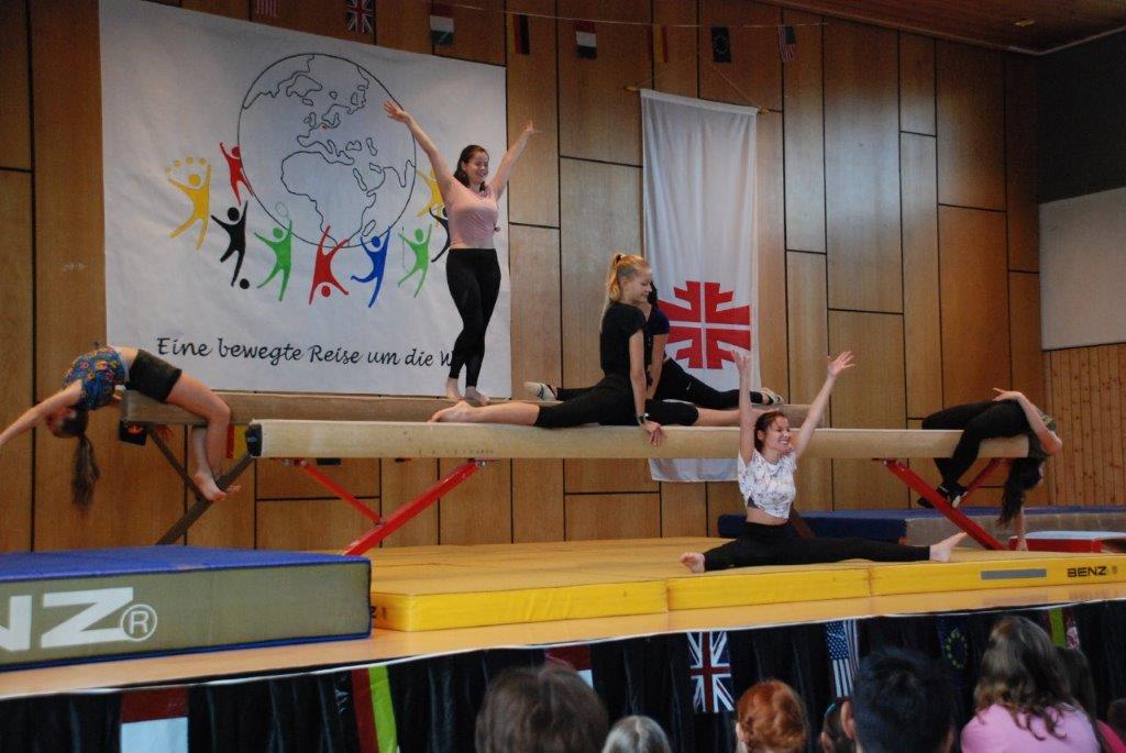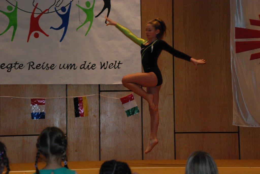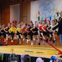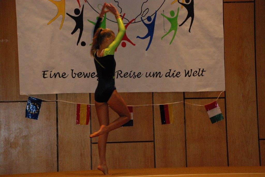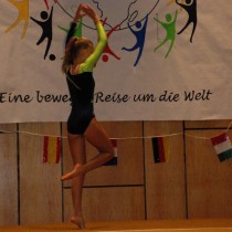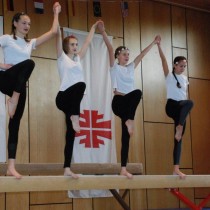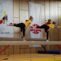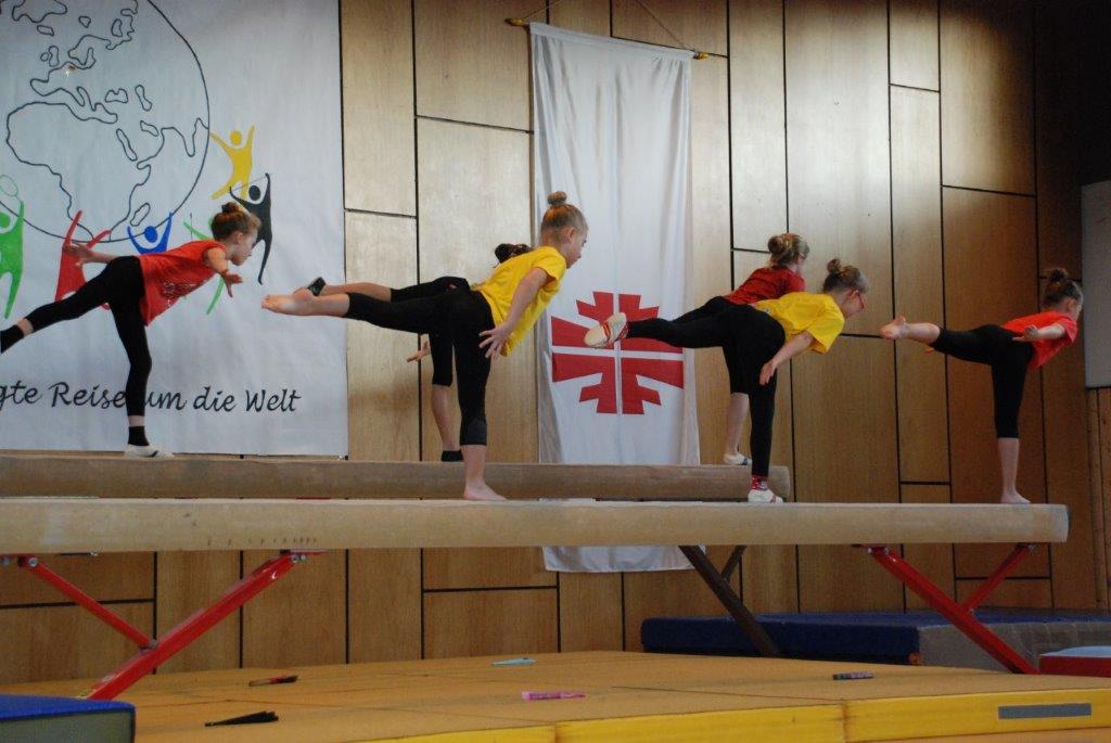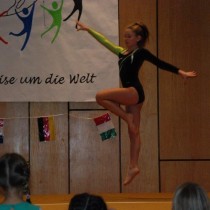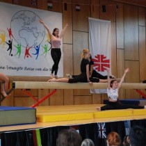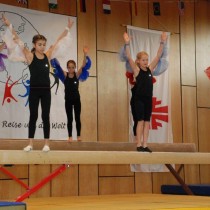 Die Fördergruppe (Trainerinnen Verena Müller und Julia Zeller) wagte sich in diesem Jahr an einen Showauftritt am Schwebebalken, der die Besucher „im Gleichgewicht um die Welt“ führte.