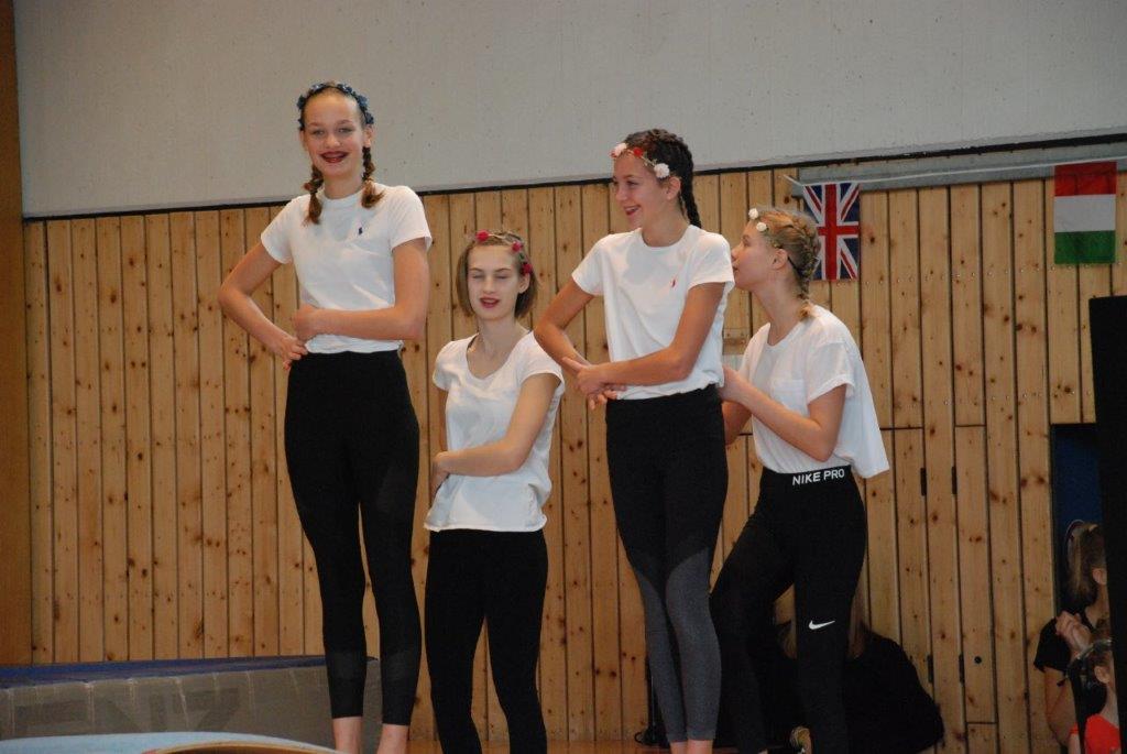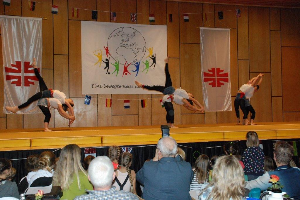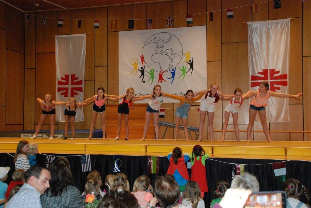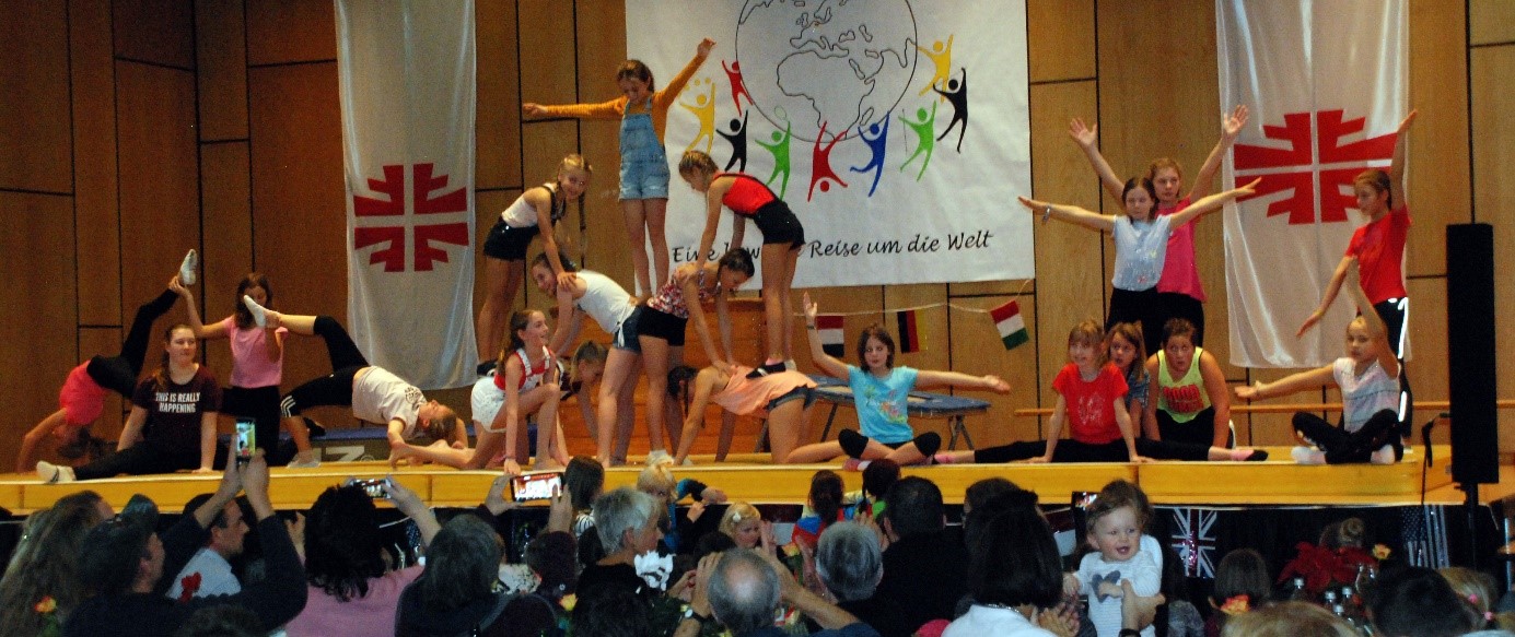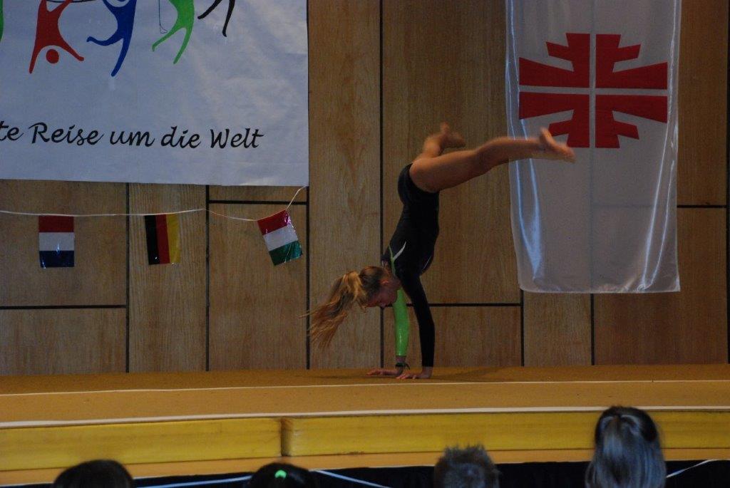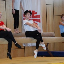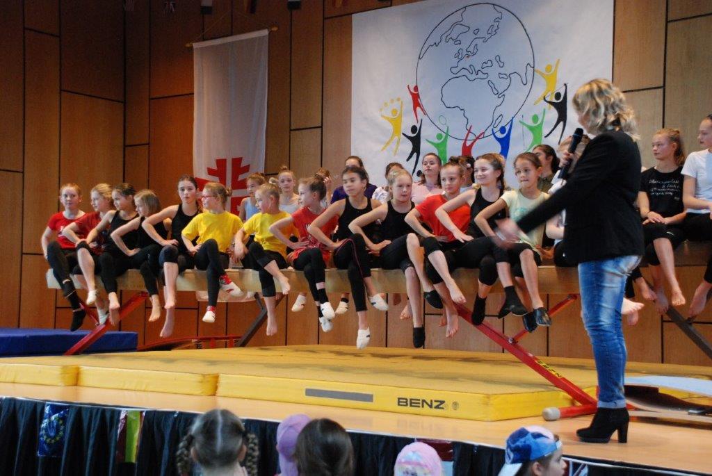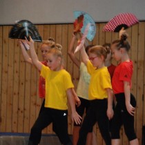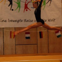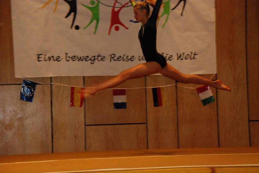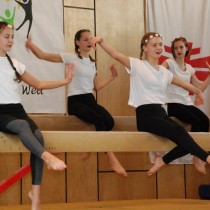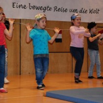 Die Fördergruppe (Trainerinnen Verena Müller und Julia Zeller) wagte sich in diesem Jahr an einen Showauftritt am Schwebebalken, der die Besucher „im Gleichgewicht um die Welt“ führte.