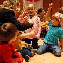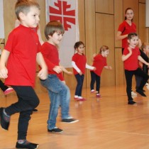 Los ging es mit den Vorschulkindern (3-4 Jahre, Trainerin Evelyn Göllnitz mit Emma, Cara und Anna-Sophie), die mit ihrem Körperteilblues die Zuschauer begeisterten.