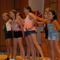9Fünf unserer Turnerinnen der Fördergruppe (Laura, Indira, Charlotte, Keana und Cara) gaben dem Publikum dann einen kurzen Einblick in das Wettkampfgeschehen und präsentierten ihre Kürübungen am Boden.