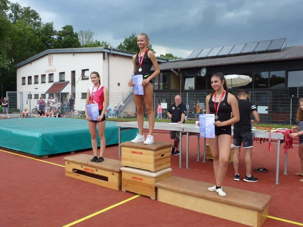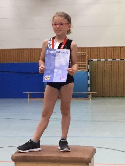 Pauline Schultz vom allgemeinen Mädchenturnen erzielte in derselben Altersklasse mit den Disziplinen Minitramp, Boden, 75m Lauf und Basketball im allgemeinen Wahl-4-Kampf die Silbermedaille.