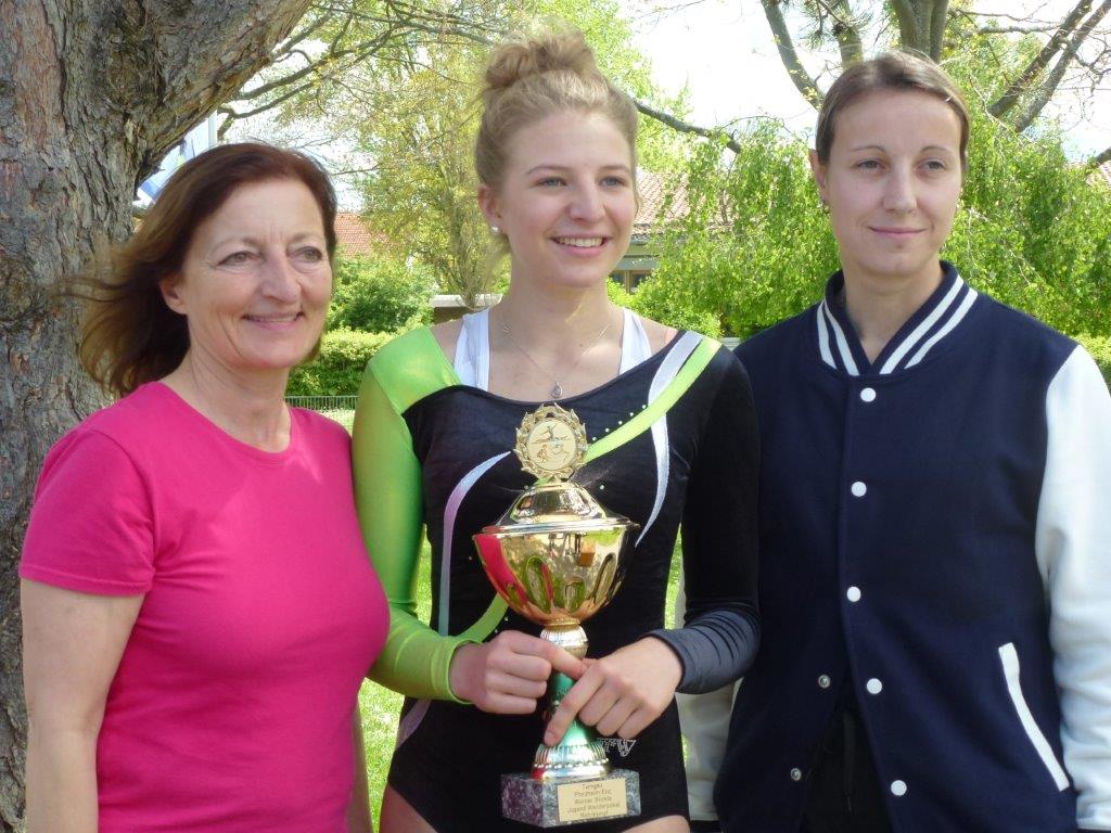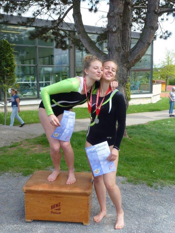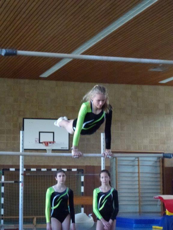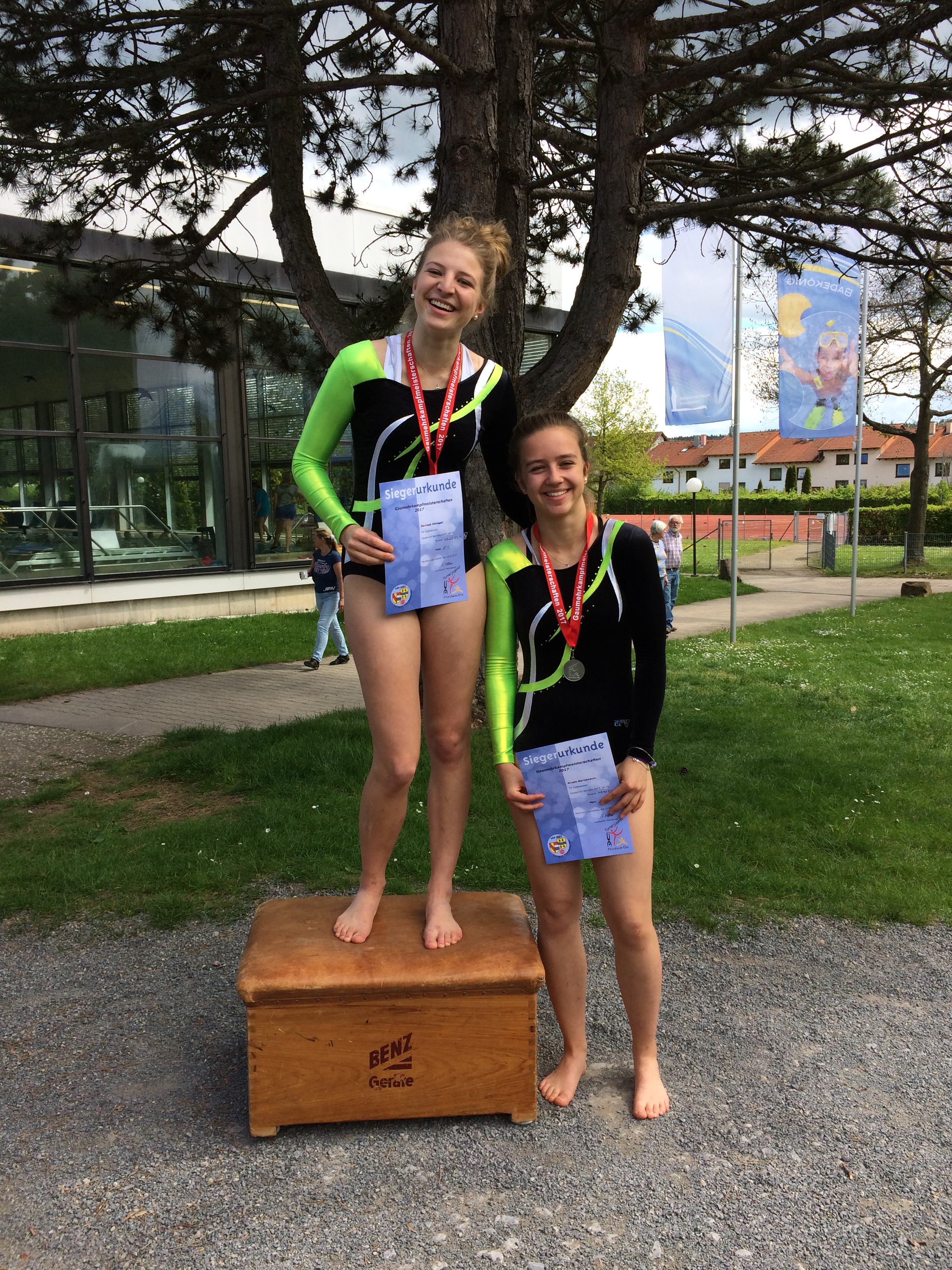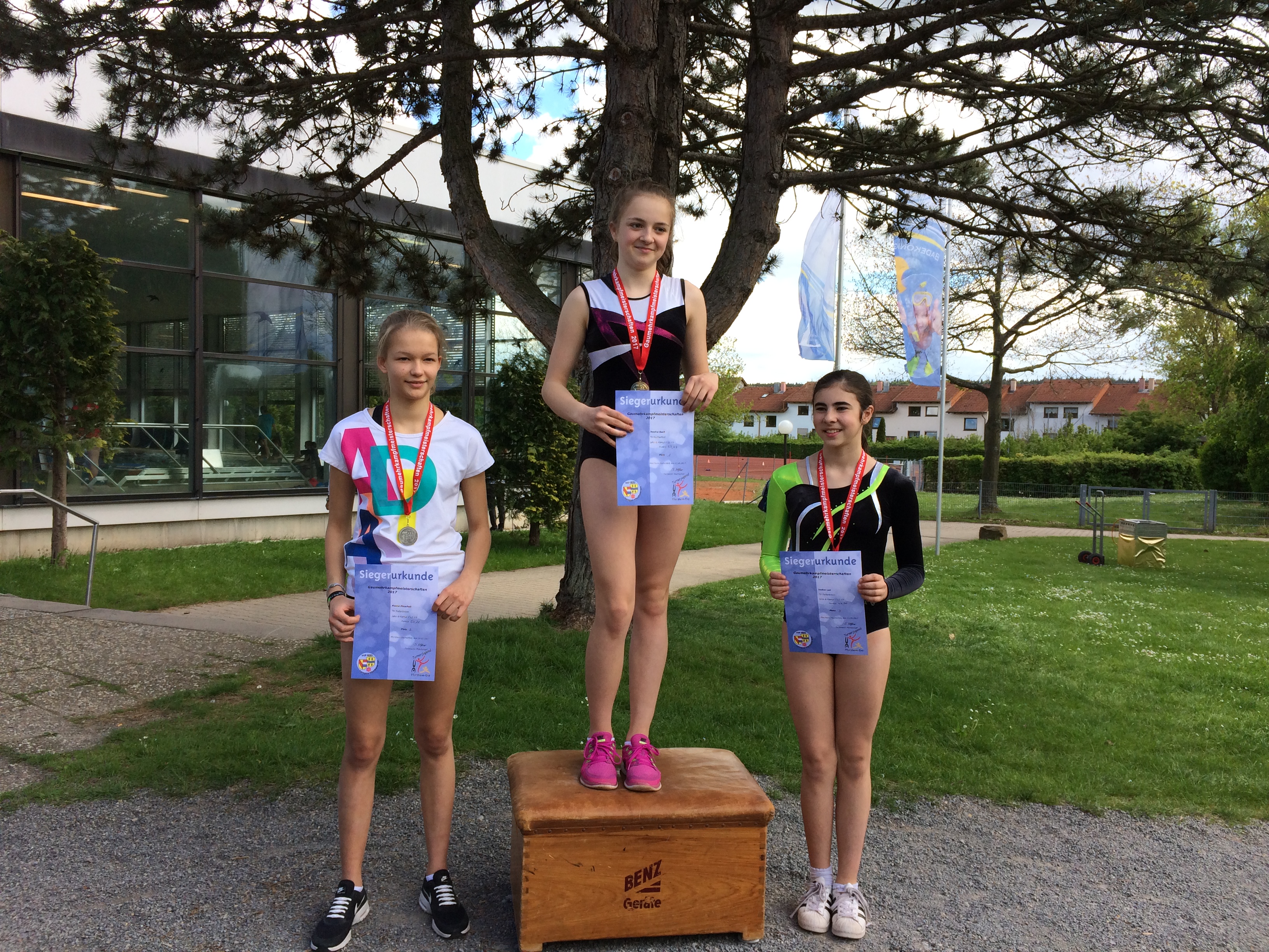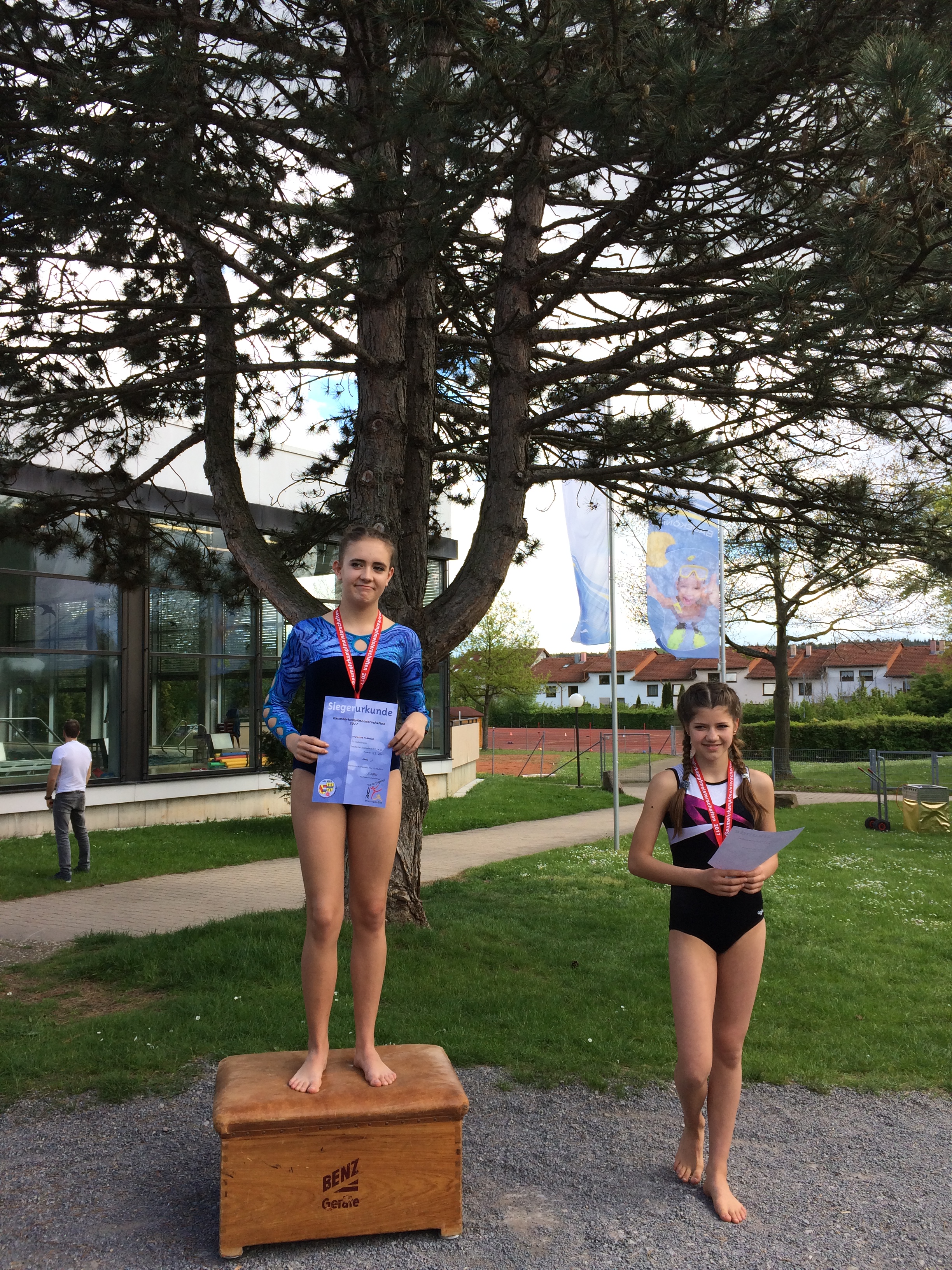 Leni Pälmer und Indira Lux nutzten den Wettkampf um erstmals ihre selbst zusammengestellten Kürübungen zu präsentieren. Leni erreichte einen 4. Platz im Deutschen-6-Kampf und Indira freute sich über die Bronzemedaille im Jahn-6-Kampf hinter ihrer Vereinskameradin Keana Pleschek, die schon etwas erfahrener Silber gewann (Altersklasse 12-13).