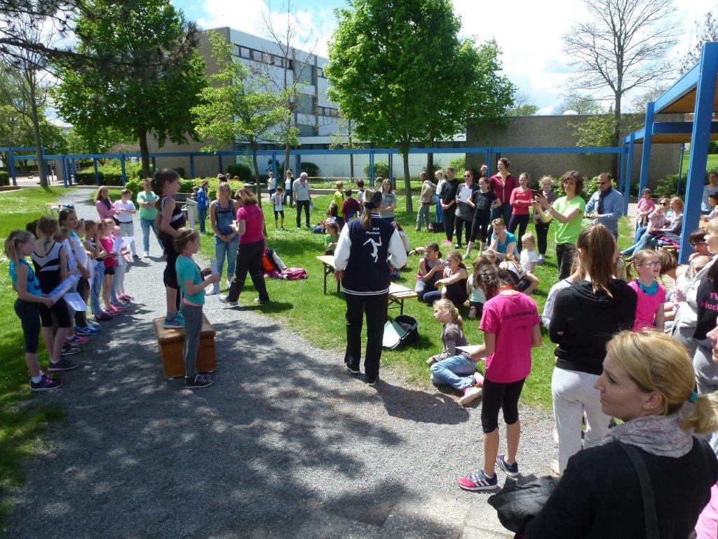 Am Samstag, den 13. Mai fanden in Huchenfeld die Gaumehrkampfmeisterschaften statt. Bei diesem Einzelwettkampf traten die Teilnehmer neben den Turndisziplinen auch in der Leichtathletik und zum Teil sogar im Schwimmen und Kunstspringen gegeneinander an. 13 Turnerinnen aus der Fördergruppe Gerätturnen des TV Tiefenbronn stellten sich diesem vielseitigen Wettkampf. Während die Turndisziplinen in der Schulsporthalle und die Leichtathletikdisziplinen auf den Außenanlagen des Schulsportgeländes in Huchenfeld absolviert werden konnten, mussten die Schwimmdisziplinen im Emma-Jäger-Bad in Pforzheim stattfinden. Dafür trafen sich die Jahnkämpfer bereits am 9. Mai.