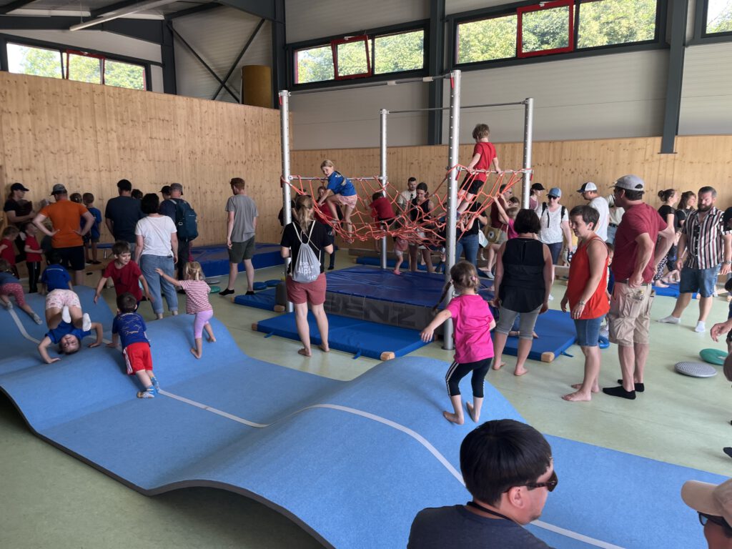 Das diesjährige Spielfest des Turngaus Pforzheim-Enz fand am 14. Juli 2024 statt. Bei strahlendem Sonnenschein und tief-blauem Himmel sind 33 Kinder (26 Kinder vom Vorschulturnen und 7 Kinder vom Eltern-Kind-Turnen) samt Eltern und zahlreichen Geschwistern nach Kieselbronn gefahren.