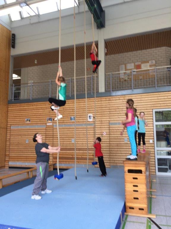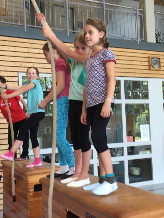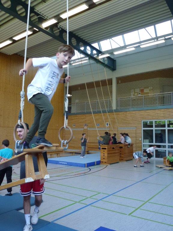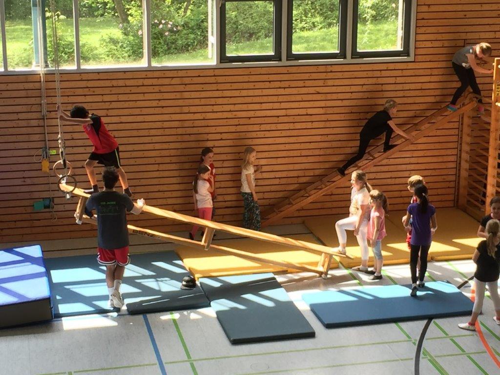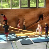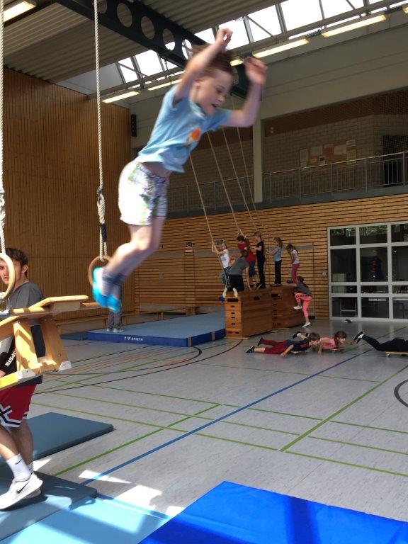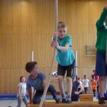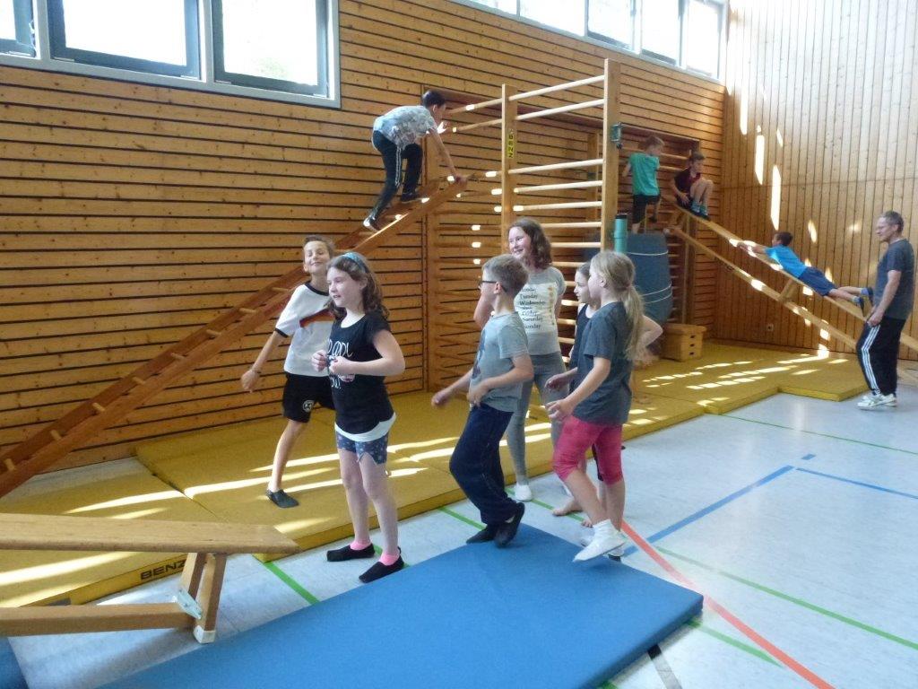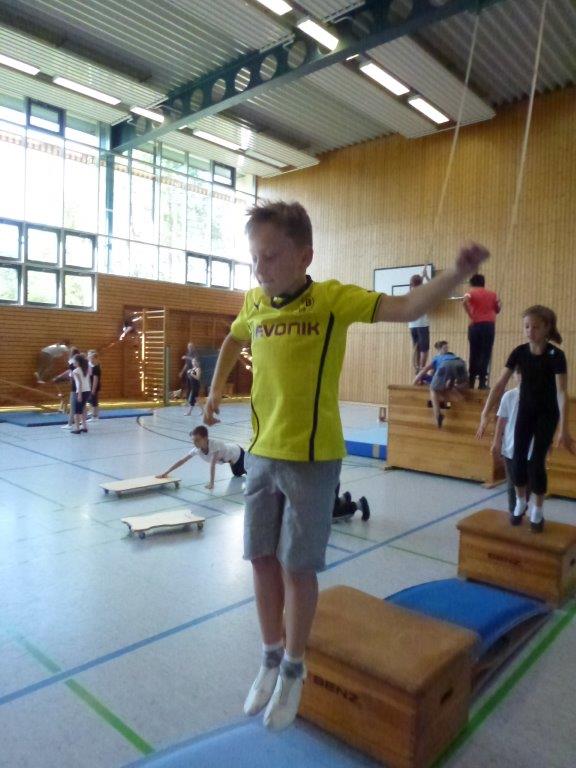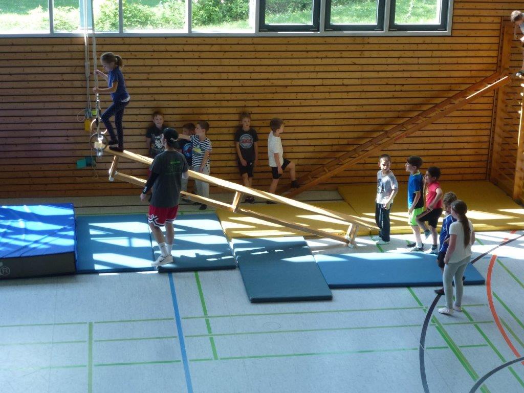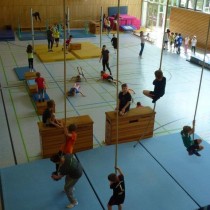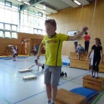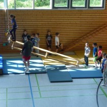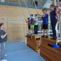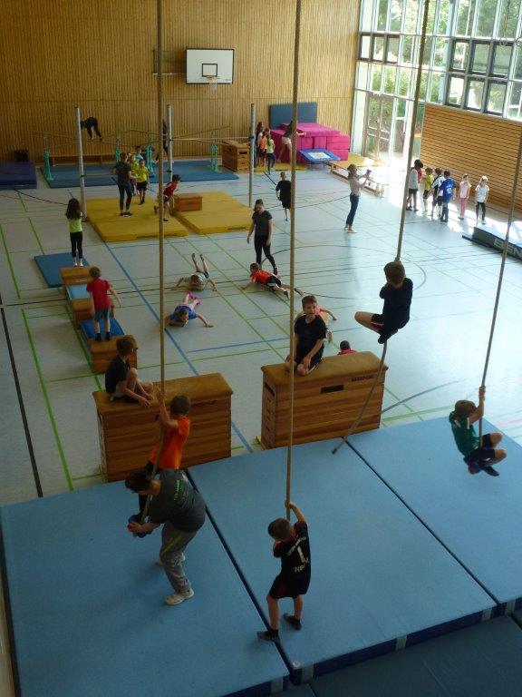 Jede Klasse hatte danach eine Stunde Zeit, um den Geräteparcours mit unterschiedlichsten Schwierigkeitsstufen und Bewegungsanforderungen zu absolvieren.
