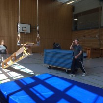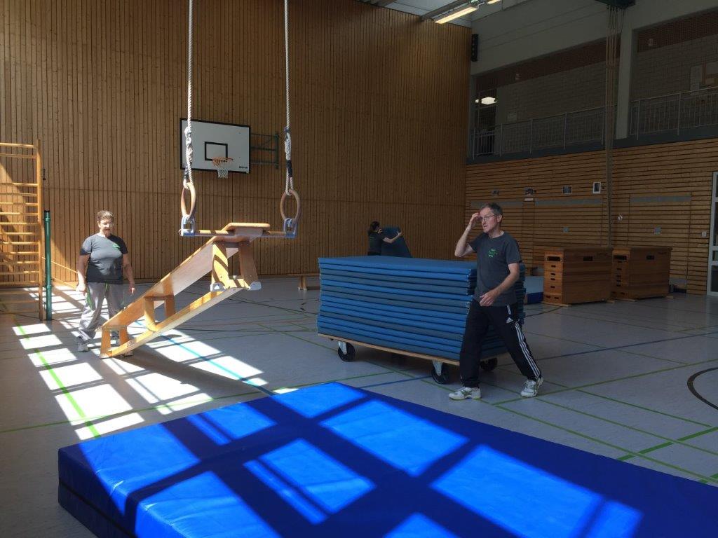 Nach einem im Vorfeld ausgearbeiteten Konzept, machten sich die Übungsleiter und Helfer daran die Turnhalle am frühen Morgen in einen großen Geräteparcours zu verwandeln.