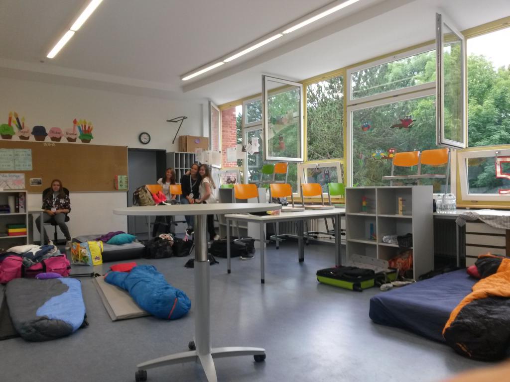 Danach ging es weiter zum Ulmer Münster. Nach einem gemeinsamen Essen blieben wir noch bis spät in die Nacht dort, da hier viel Unterhaltung auf der Showbühne geboten wurde. Mit einem kleinen actionreichen Spiel beendeten wir den ersten Abend in der Schule und gingen anschließend in unser Klassenzimmer, um ein wenig zu schlafen.