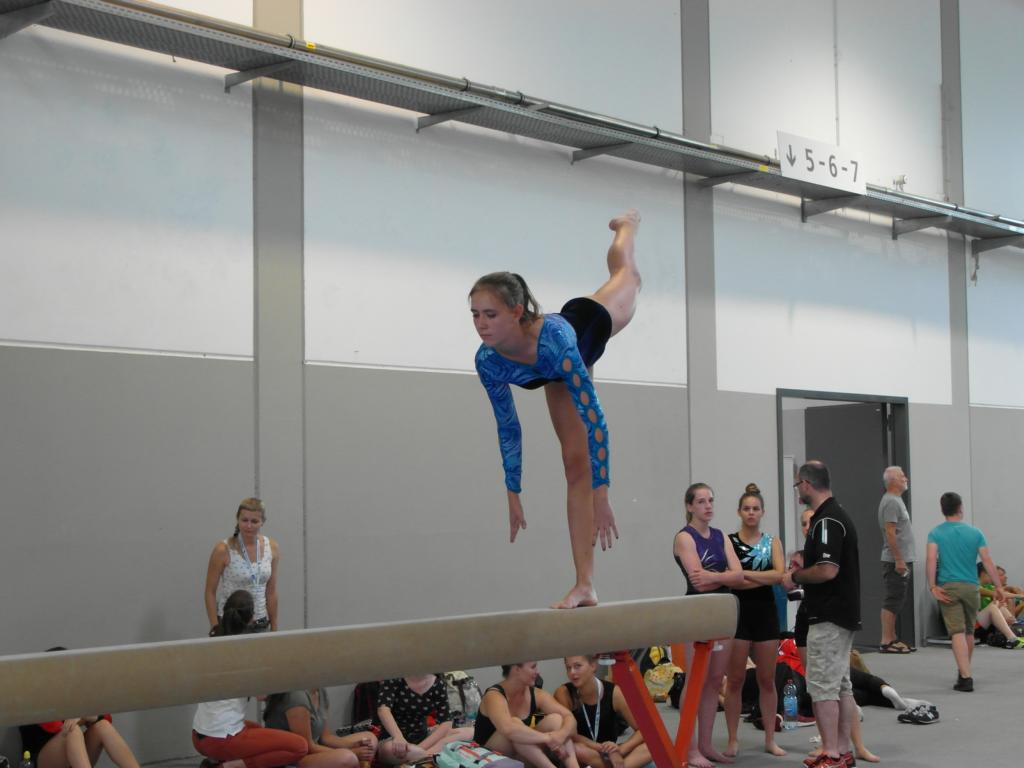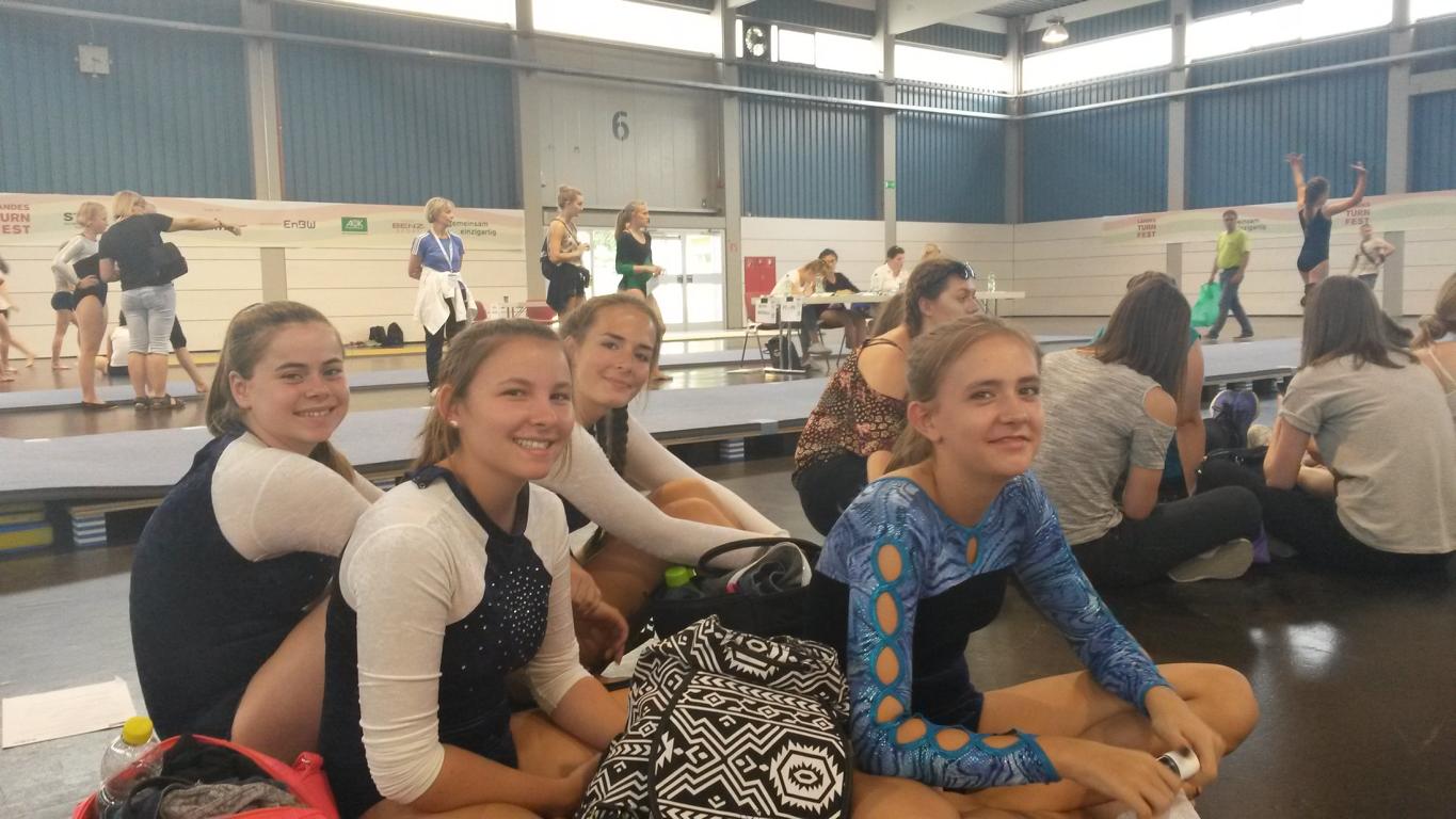 Zurück im Nachtquartier der Schule freuten wir uns, unsere Turnkameradinnen der Ü-18 Turngruppe begrüßen zu können, die zwischenzeitlich auch eingetroffen waren (Lisa Carl, Ulrike Jost, Rosy Sindelar und Julia Zeller). Am darauffolgenden Tag stand wieder ein Turnwettkampf an, dieses Mal für unsere Ü-18 Mädels. Nachdem wir morgens noch ein paar Besorgungen in der Stadt erledigten, ließen wir es uns nicht nehmen, unsere Ü-18 Gruppe bei ihren Wettkämpfen zu unterstützen. Völlig aus dem Häuschen waren wir, da unsere Trainerin Julia Zeller in ihrem Wettkampf einen unglaublichen 1. Platz gewann und somit in ihrer Altersklasse Turnfestsiegerin wurde. Wir gratulieren dir Julia und sind stolz auf dich!!!