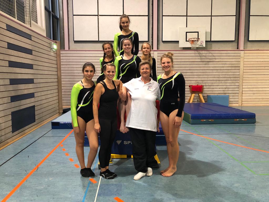 Durch Studium, Auslandsaufenthalt und Verletzungen gab es in unserer ältesten Gruppe einen personellen Wechsel. Neben Laura Burgert, Hannah Heimpel, Keana Pleschek, Cara Sawilla und Oldie Julia Zeller wagten sich mit Indira Lux und Leni Pälmer erstmals zwei neue Mannschaftsmitglieder als die anspruchsvollen Kürübungen der Leistungsklasse 3. Die Mannschaft zeigte ordentliche Übungen mussten jedoch wie bereits in der Vorrunde zu viele Absteiger am Zittergerät Schwebebalken hinnehmen, sodass mit einem Platz auf dem Podium nicht mehr zu rechnen war. Am Ende wurde es der 5. Platz.