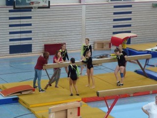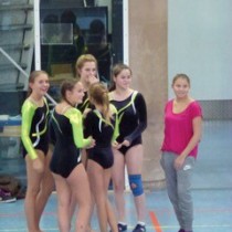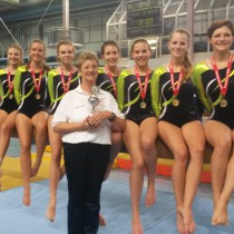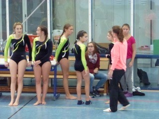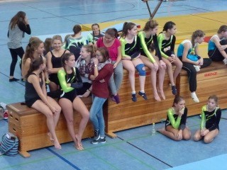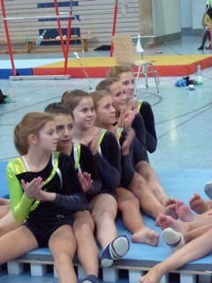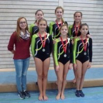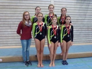 Es turnten (von links): Hannah Heimpel, Nicole Marjanovic, Jana Seitter, Lisa Carl, Marie-Sophie Burgert, Julia Zeller und Verena Ruder mit Kampfrichterin Charlotte Schrödinger, an welche ein herzliches Dankeschön zu richten ist. Nicht nur für Ihre Tätigkeit als Kampfrichtern, aber auch als Unterstützung der Wettkampfvorbereitung während der Trainingsstunden.