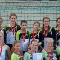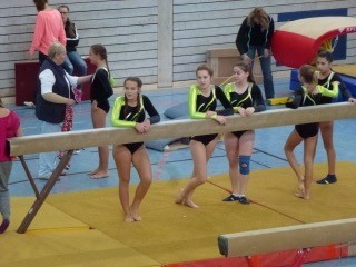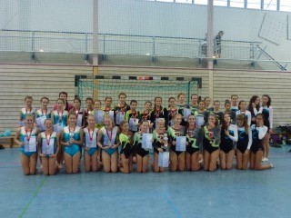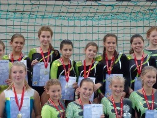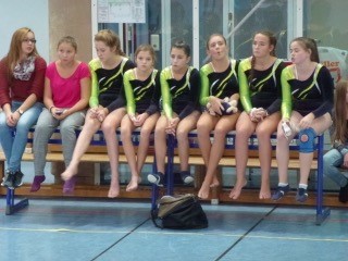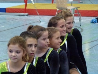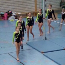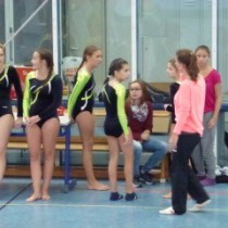 Nach der Vorrunde, die im Mai ausgetragen wurde, lagen unsere jüngsten Turnerinnern, die nur zu viert an den Start gingen, mit 142,75 Punkten auf den 10. Platz. Von ihnen wurden Pflichtübungen der Schwierigkeit P3-P6 gefordert. Zwar konnten sich die Mädchen um ganze 7,5 Punkte in der Rückrunde steigern, verpassten aber mit nur 0,05 Punkten den Sprung auf den 9. Platz.