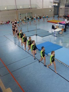 Am vergangenen Wochenende fand in der Ludwig-Erhard-Halle in Pforzheim die Rückrunde des Pokalturnens der Turnerjugend Pforzheim-Enz statt. Bei diesem Wettkampf besteht eine Mannschaft aus bis zu acht Turnerinnen, von denen pro Gerät fünf Turnerinnen zum Einsatz kommen. Die drei besten Übungen je Gerät bilden schließlich die Mannschaftswertung. Die Mannschaft mit den meisten Punkten nach Vor- und Rückrunde erhält die begehrte Trophäe und darf sich Pokalsieger nennen. Hoch motiviert und mit neuen Turnbodys absolvierten unsere Turnerinnen ihren letzten Wettkampf für dieses Jahr.