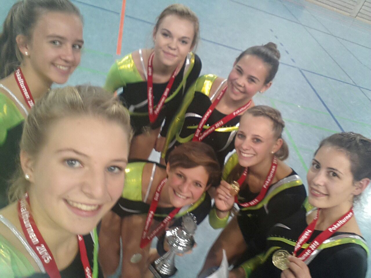 Im Kürwettkampf LK 3 konnten unsere „Großen“ seit dem letzten Pokalsieg im Jahr 2010 endlich wieder den Pokal nach Tiefenbronn holen. Die Turnerinnern starteten mit einem ersten Platz aus der Vorrunde und ließen somit die acht anderen teilnehmenden Mannschaften hinter sich. Allerdings trennten sie lediglich 0,25 Punkte zum zweiten und 0,50 Punkte zum dritten Platz, was eine spannende Rückrunde versprach. Mit großem Einsatz und einer tollen Mannschaftsleistung weitete sich der Vorsprung zum Zweitplatzierten auf 2 Punkte aus und die Turnerinnen wurden mit einer Goldmedaille und dem begehrten Pokal belohnt.