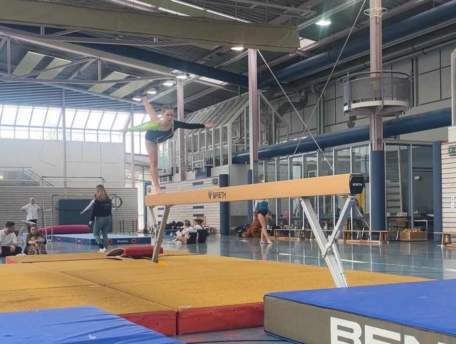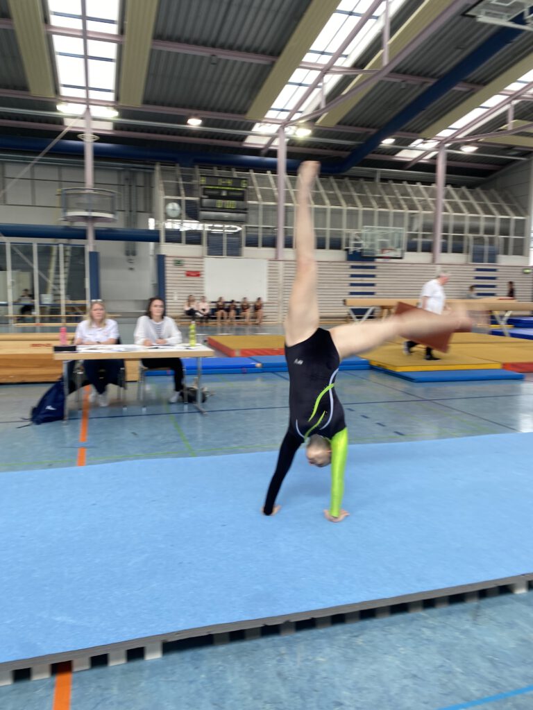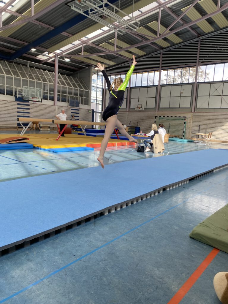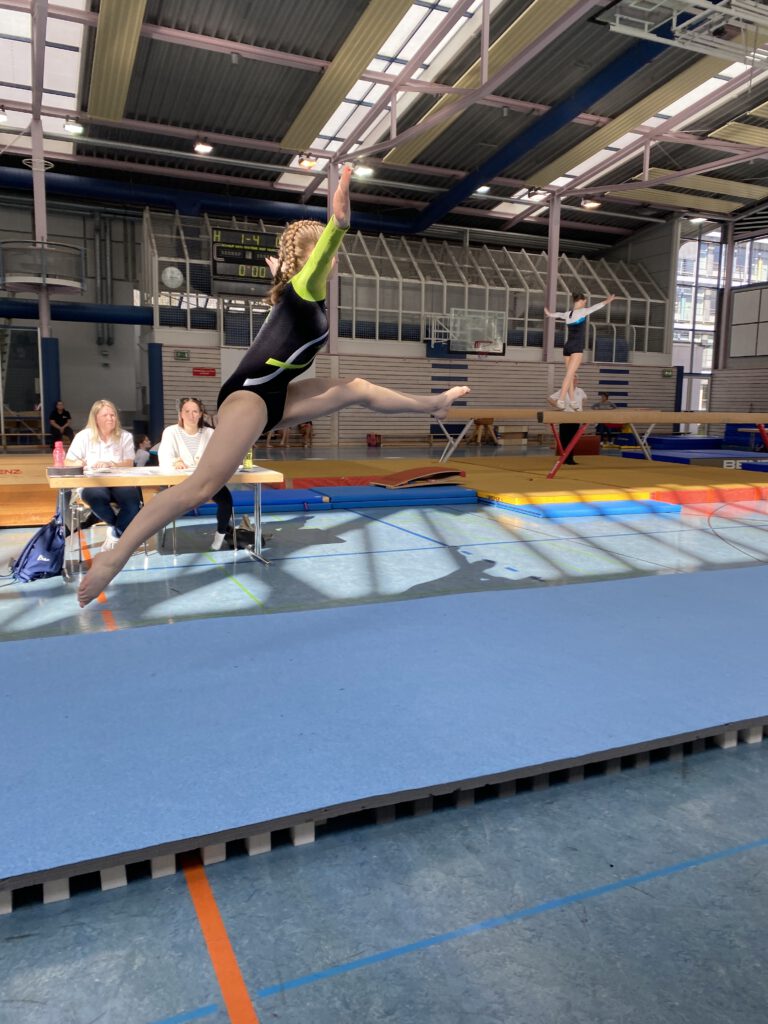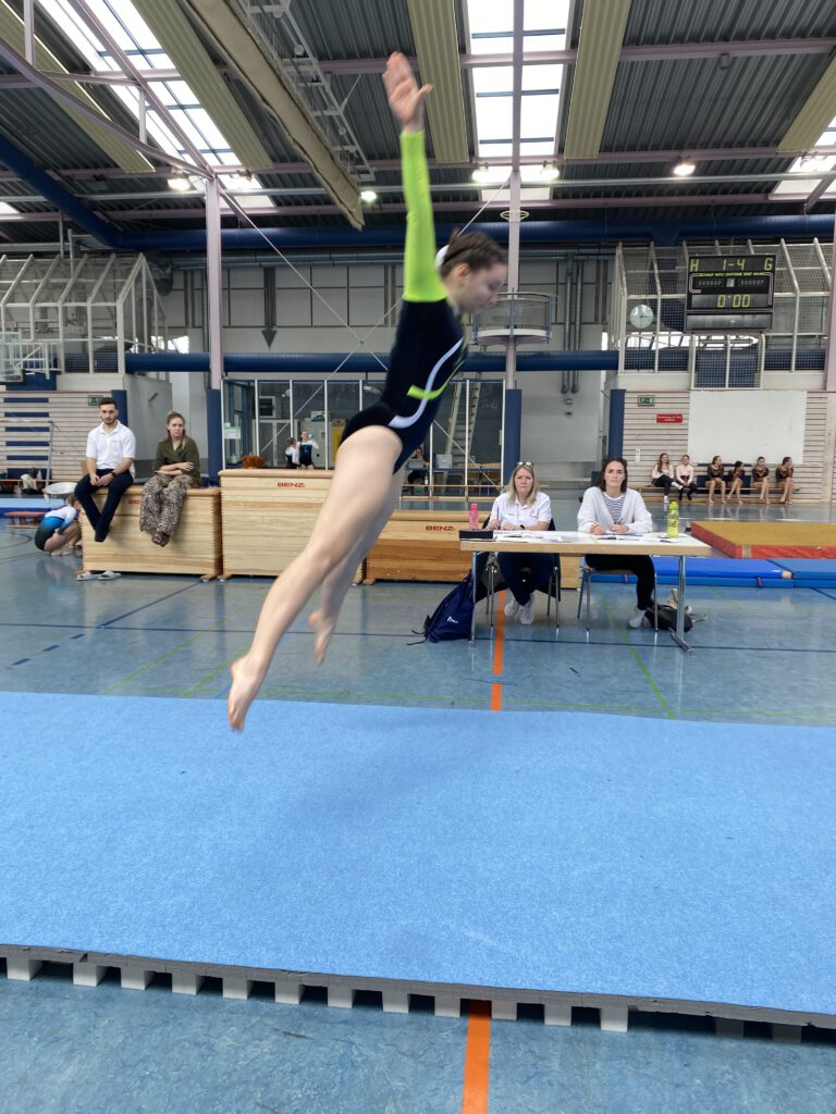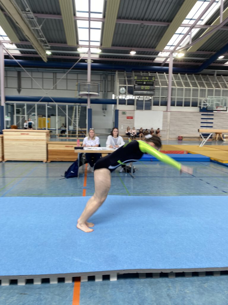 Hochmotiviert traten die Mädchen zum Wettkampf an und starteten am Balken. Leider mussten sie hier zwei Stürze einstecken. Sie ließen sich jedoch nicht unterkriegen und zeigten an den restlichen drei Geräten souveräne Übungen.