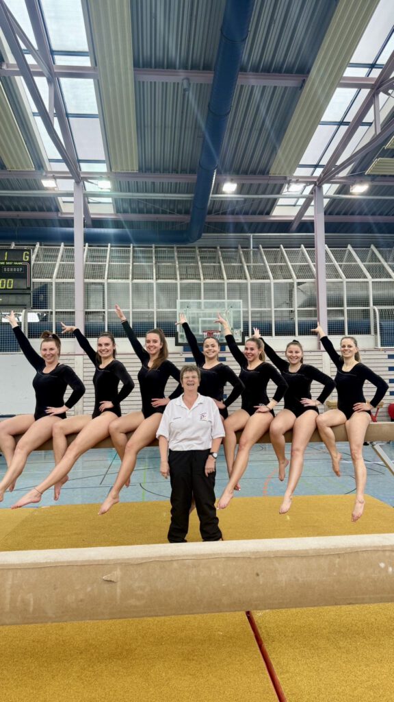 Bereits am Samstagmorgen um 8:30 Uhr startete die erste Mannschaft der Fördergruppe (Altersklasse 12/13 Jahre und jünger) gemeinsam mit beiden Ü18-Mannschaften in der offenen Altersklasse in den Wettkampf. Die jungen Turnerinnen der Fördergruppe überzeugten mit starken Übungen an allen Geräten und wurden dafür mit der Goldmedaille belohnt.