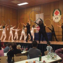 Die Damengymnastikgruppe (Trainerin Marion Fröhlich) wagte sich in diesem Jahr an eine Aufführung mit Reifen und danach hieß es bei den Vorschulkindern (5-6 Jahre – Trainerin Evelyn Göllnitz) „von allem ebbes…“ auf ihrem Weg durch einen Geräteparcour.