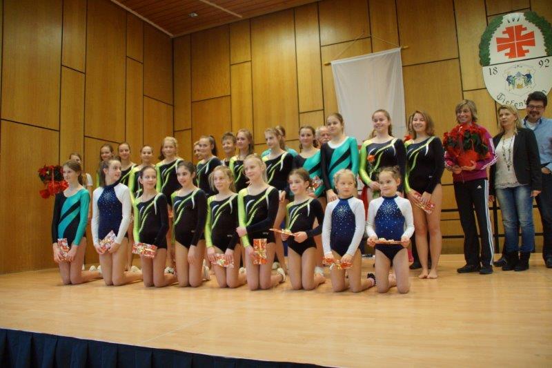 Ein besonderer Programmpunkt waren auch in diesem Jahr wieder die Ehrungen unserer Turnerinnen, die im Jahr 2016 den Sprung aufs Siegertreppchen geschafft hatten. 26 Turnerinnen konnten für ihre tollen Leistungen ausgezeichnet werden – Turnerinnen der Fördergruppe und besonders hervorzuheben, auch zahlreiche Turnerinnen vom allgemeinen Mädchenturnen. Als Anerkennung erhielten die Siegerinnen ein kleines Geschenk. Einen besonderen Dank erhielten an dieser Stelle auch die Übungsleiterinnen und Helfer, die am Erfolg unserer Turnerinnen Anteil haben. Und nicht zu vergessen unsere Kampfrichterinnen, ohne sie dürften unsere Mädchen nicht zu den Wettkämpfen antreten. Besonders bedankten sich die Vorstandsmitglieder Marion Fröhlich und Oliver Schätz bei allen Übungsleiterinnen, Übungsleitern und Helfern, die das diesjährige Programm gestalteten. In unserer heutigen Zeit ist ein solches Engagement besonders zu würdigen.