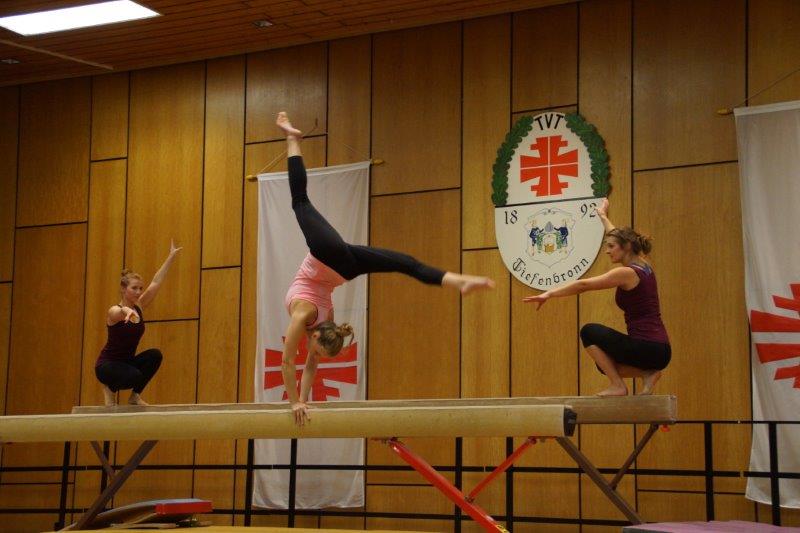 Den Abschluss des turnerischen Programms gestaltete die Ü18 – Turngruppe (Trainerinnen Julia Zeller, Verena Müller). Sie zeigte auf charmante Art, wie man auch noch in „reifem Alter“ geschmeidig über den Balken schweben kann. Die Zuschauer würdigten unsere „alten Hasen“ mit tosendem Applaus.