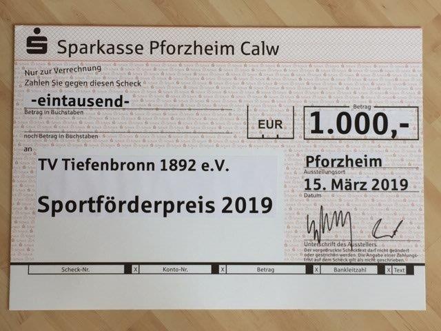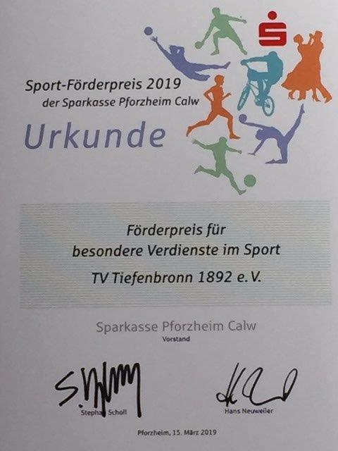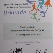TV Tiefenbronn erhält für sein besonderes Engagement im Jugendbereich den Sportförderpreis 2019!