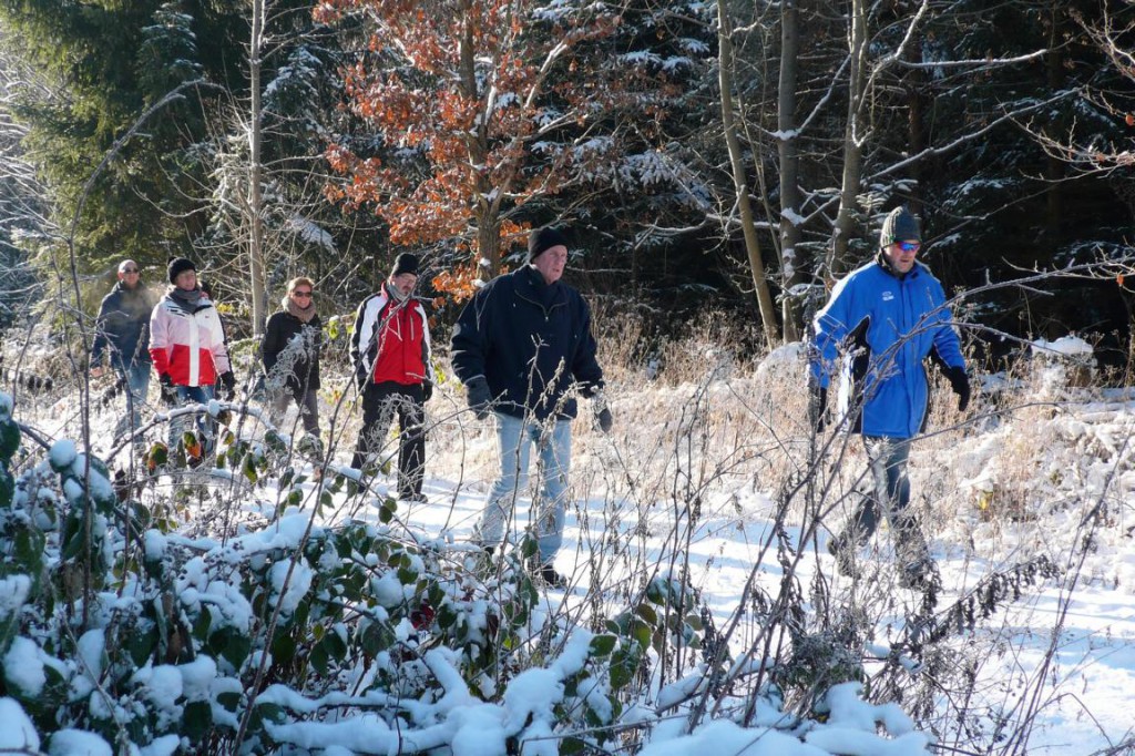 In diesem Jahr hatten wir mit dem Wetter mal wieder Glück. Es hatte geschneit und bei strahlendem Sonnenschein und – 7 C° starten wir dann die geplante Tour, welche wir anlässlich unseres Jubiläums im März als Gauwanderung ausgeschrieben haben.